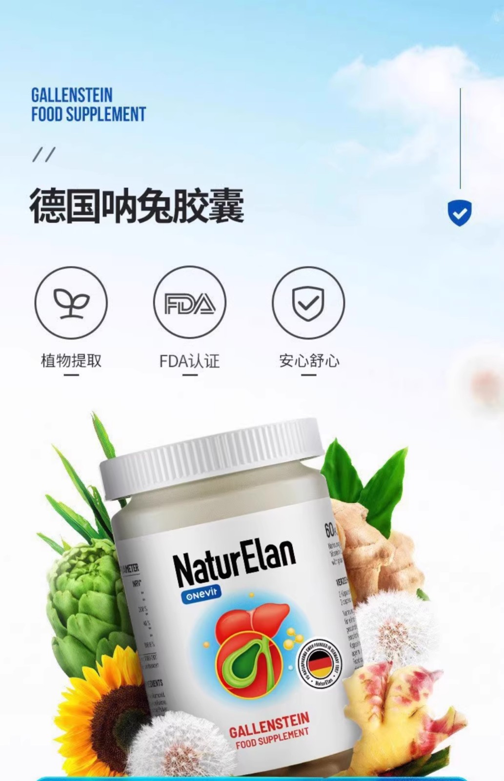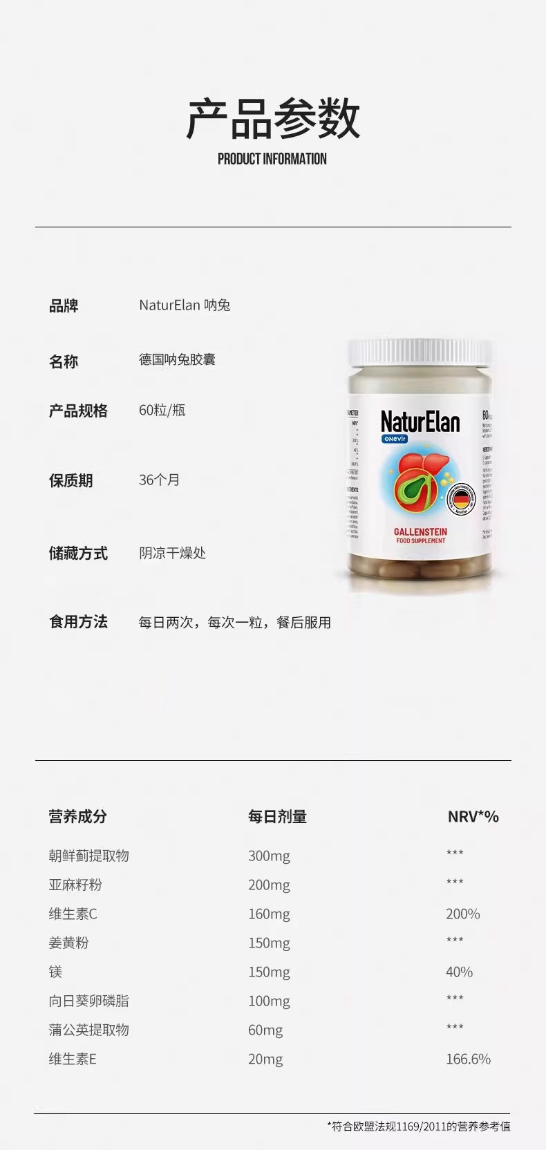 【新旧包装随机发】德国NaturElan呐兔消石素胶囊60粒