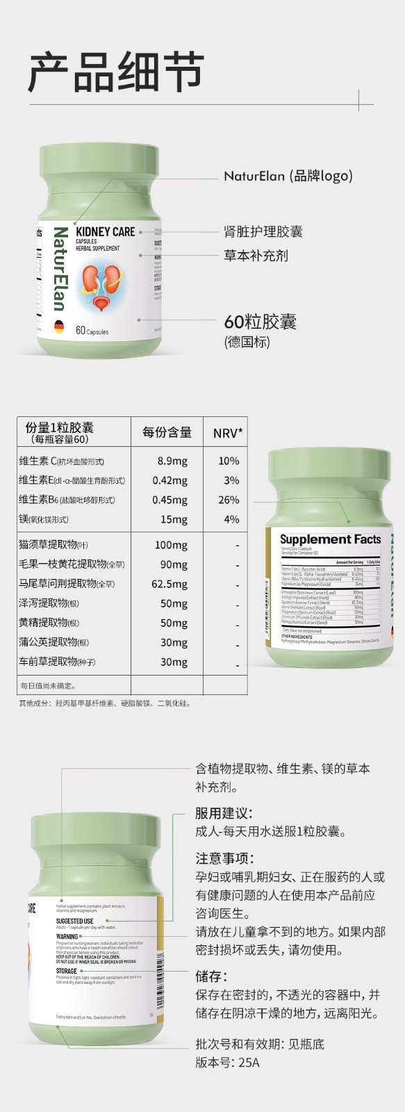 【新旧包装随机发】德国NaturElan呐兔消肾石 强效版 60粒