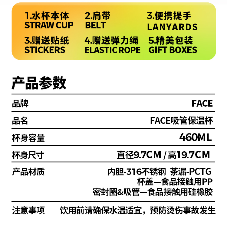 FACE 手提便携保温壶【柠檬黄】(460ml)