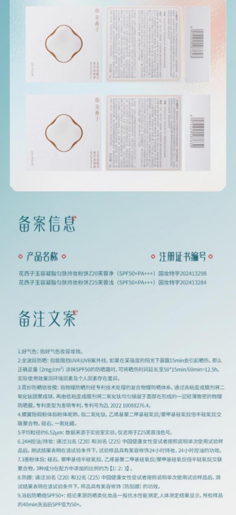 花西子 玉容凝脂匀肤持妆粉饼SPF50+PA+++-Z25芙蓉浅-9g(防晒粉饼)