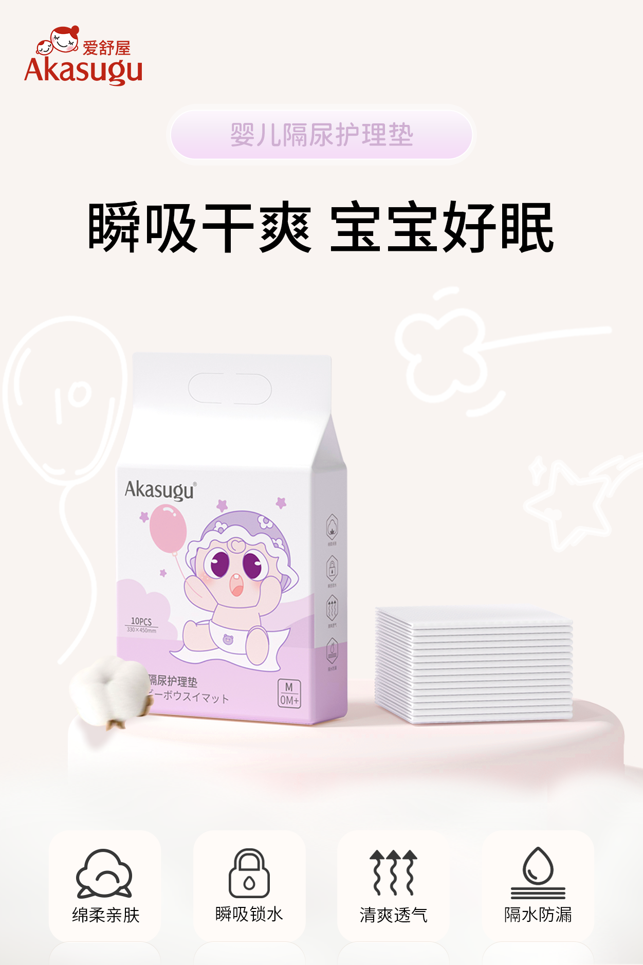爱舒屋 隔尿垫(33cm*45cm)10片*6
