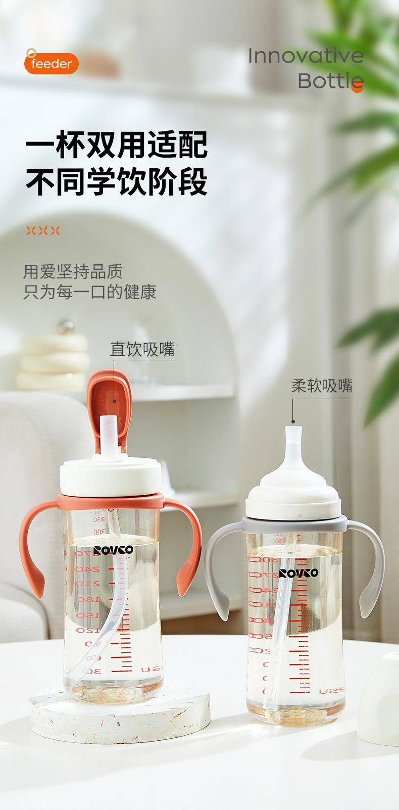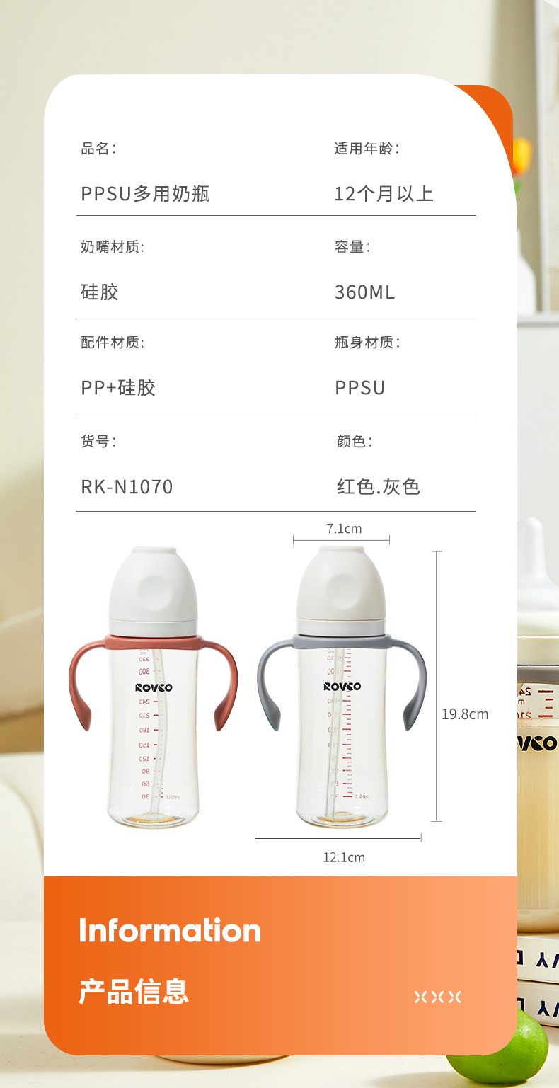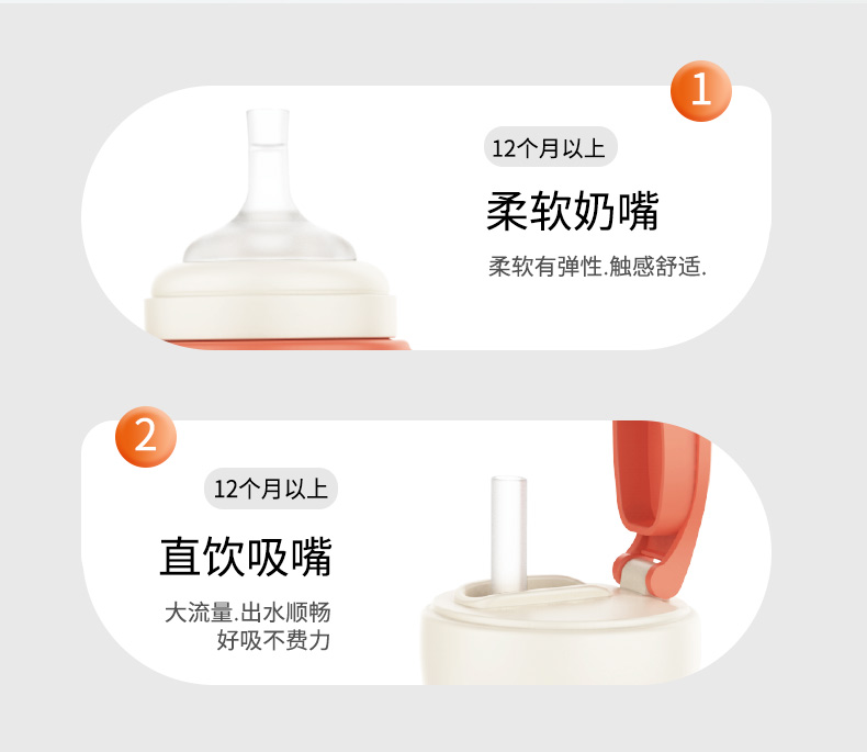 日康 PPSU两用吸嘴奶瓶360mL(灰色)