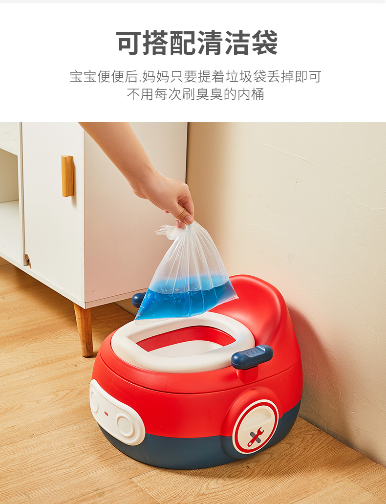 日康 多功能儿童马桶(红色)+3卷垃圾袋+马桶刷