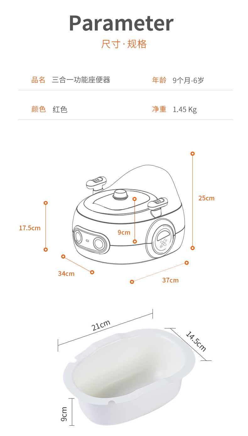 日康 多功能儿童马桶(红色)