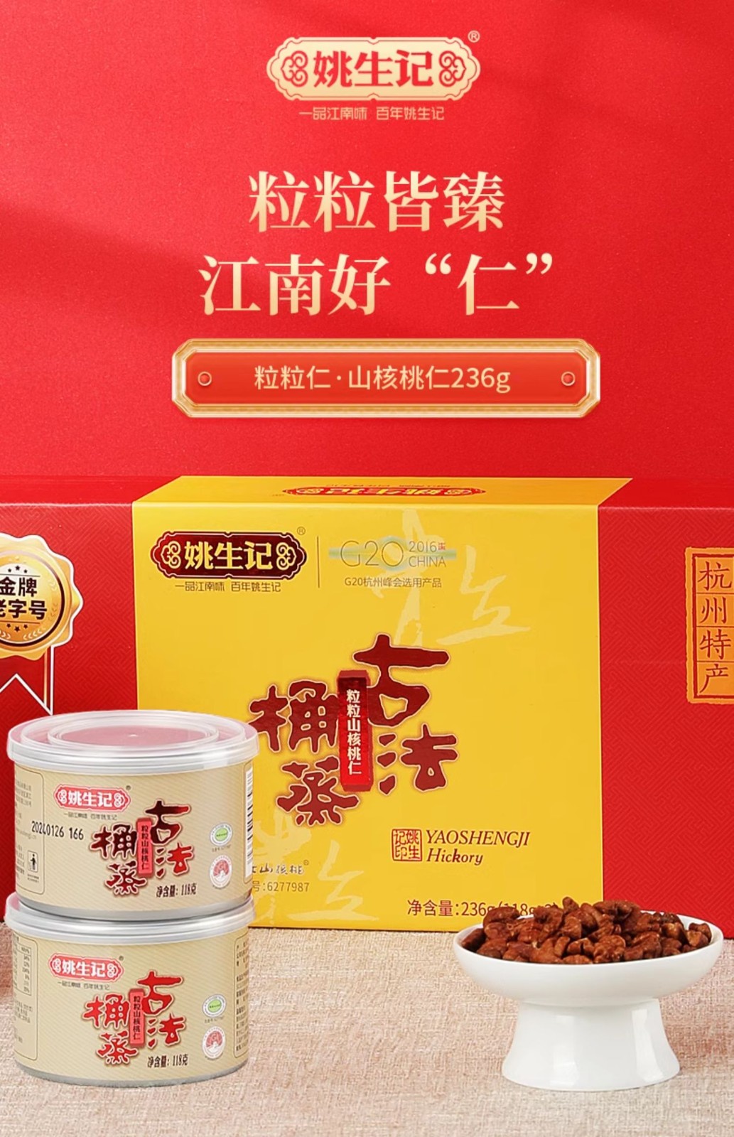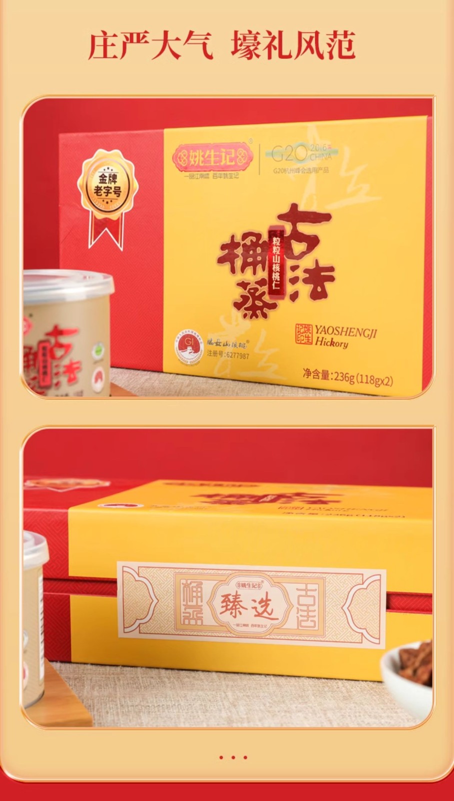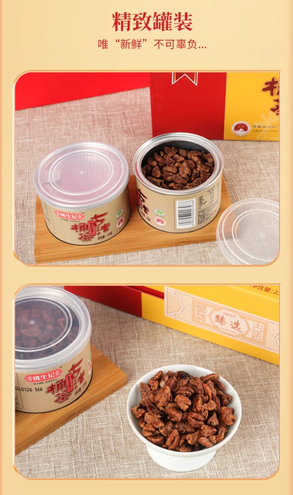 姚生记 粒粒山核桃仁铁罐两罐装礼盒118gx2罐