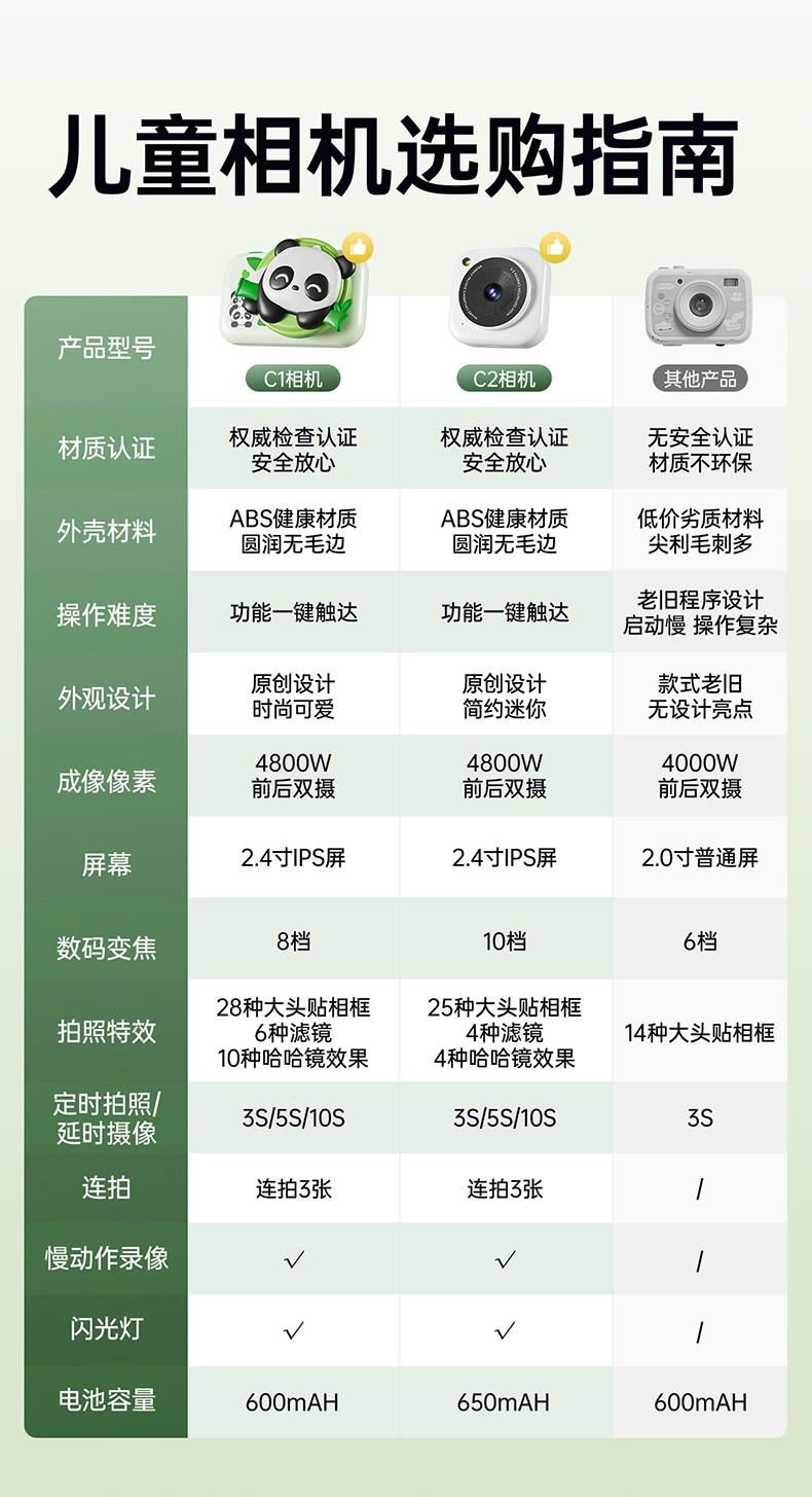 贝恩施 C1儿童数码相机64G内存(白色)
