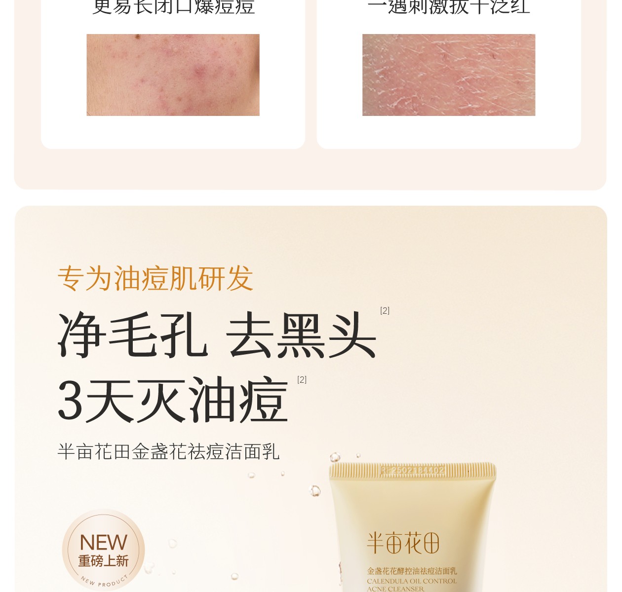 半亩花田 金盏花花酵控油祛痘洁面乳20g