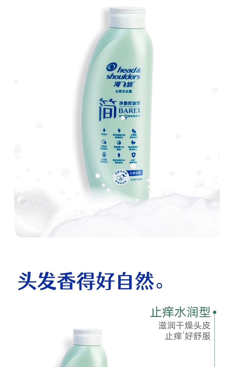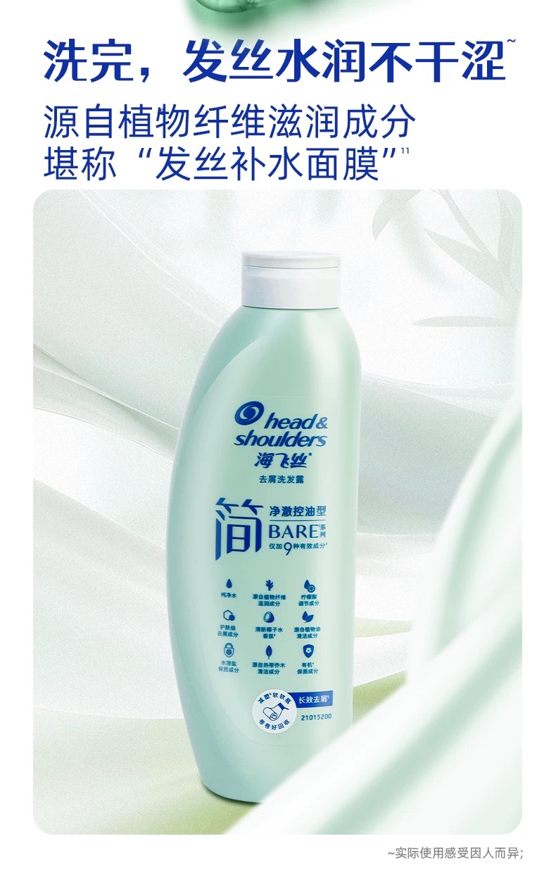 海飞丝 简系净澈控油洗发水-400g/瓶