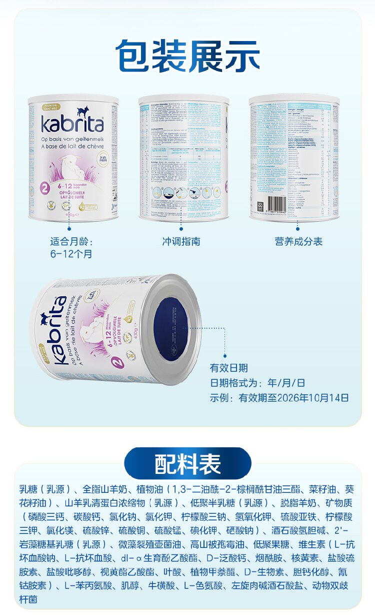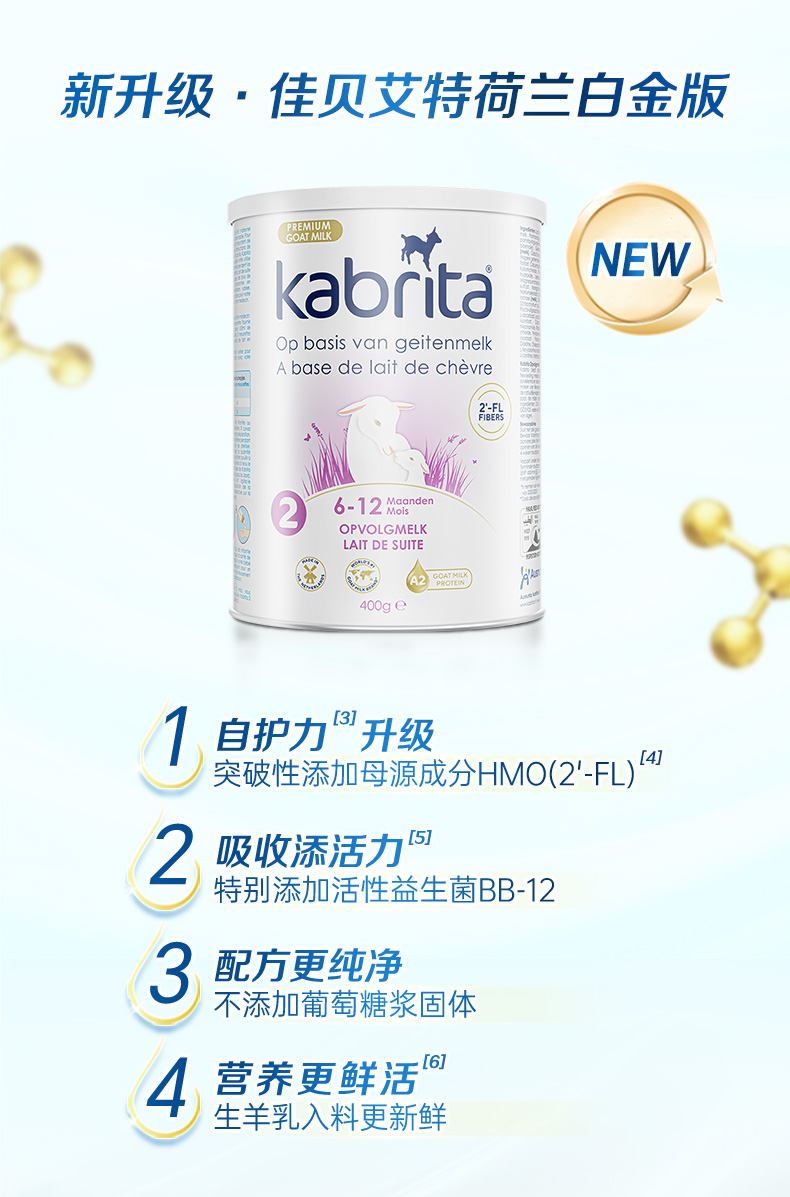 荷兰版佳贝艾特羊奶粉白金版2段400g(新包装)