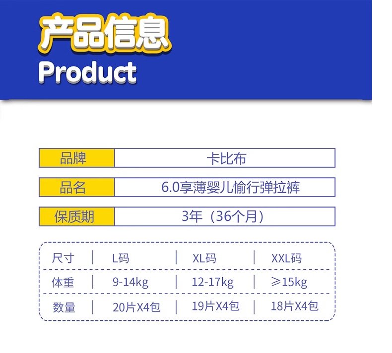 卡比布 6.0亲肤薄感婴儿拉拉裤L码20片/包*4(9-14kg)