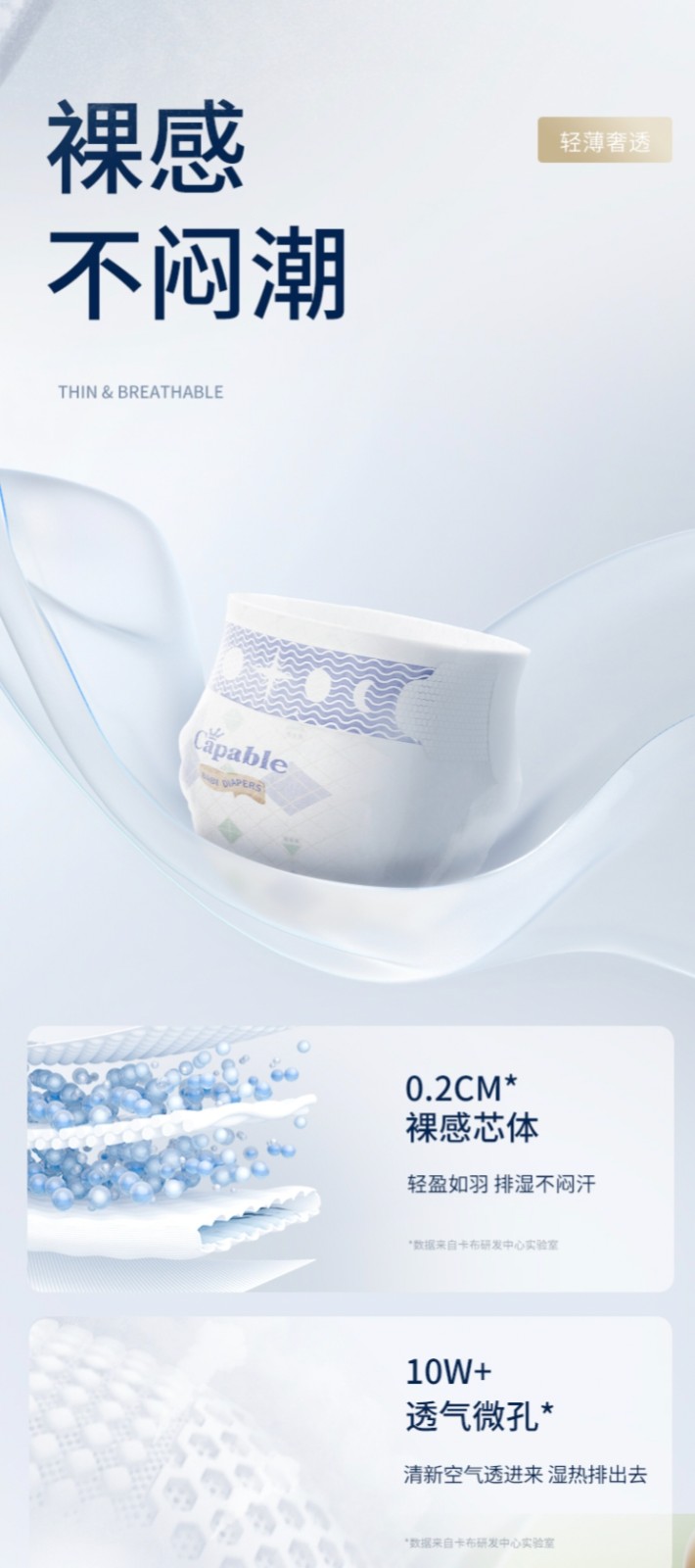 卡比布(Capable)享薄系列婴儿纸尿裤M60片/包(6~11kg)