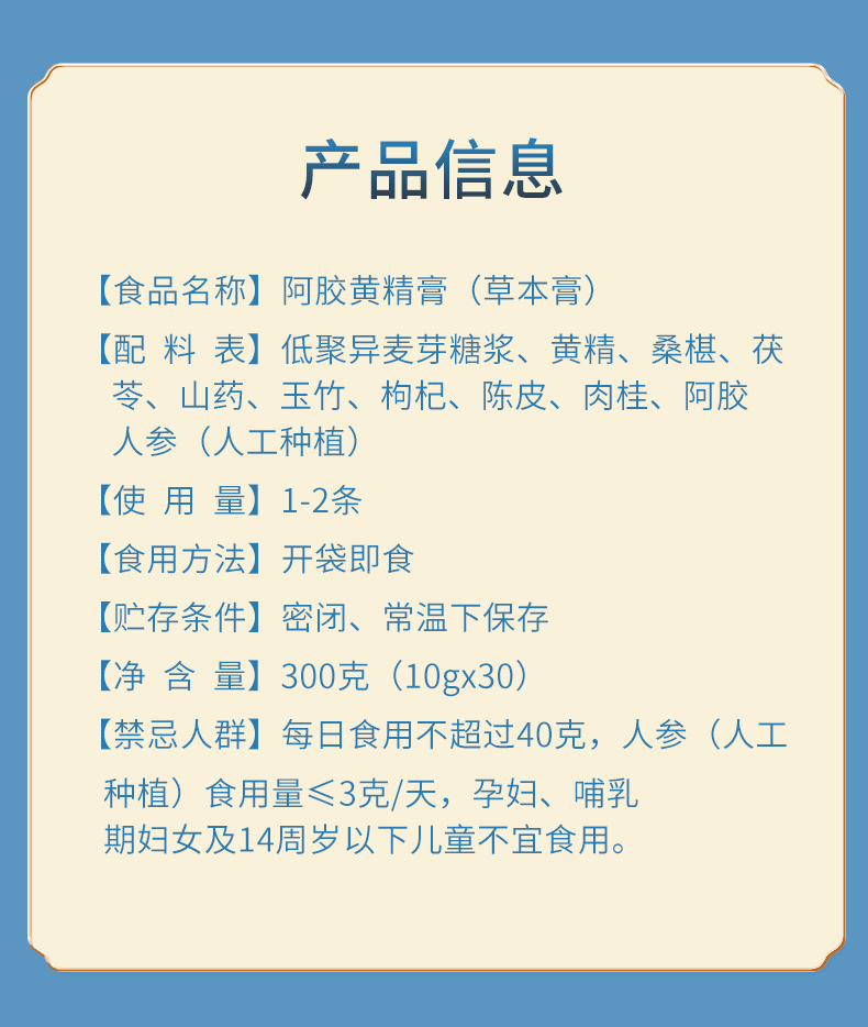 宏济堂 阿胶黄精膏10g/条X30条/盒共300g礼盒款