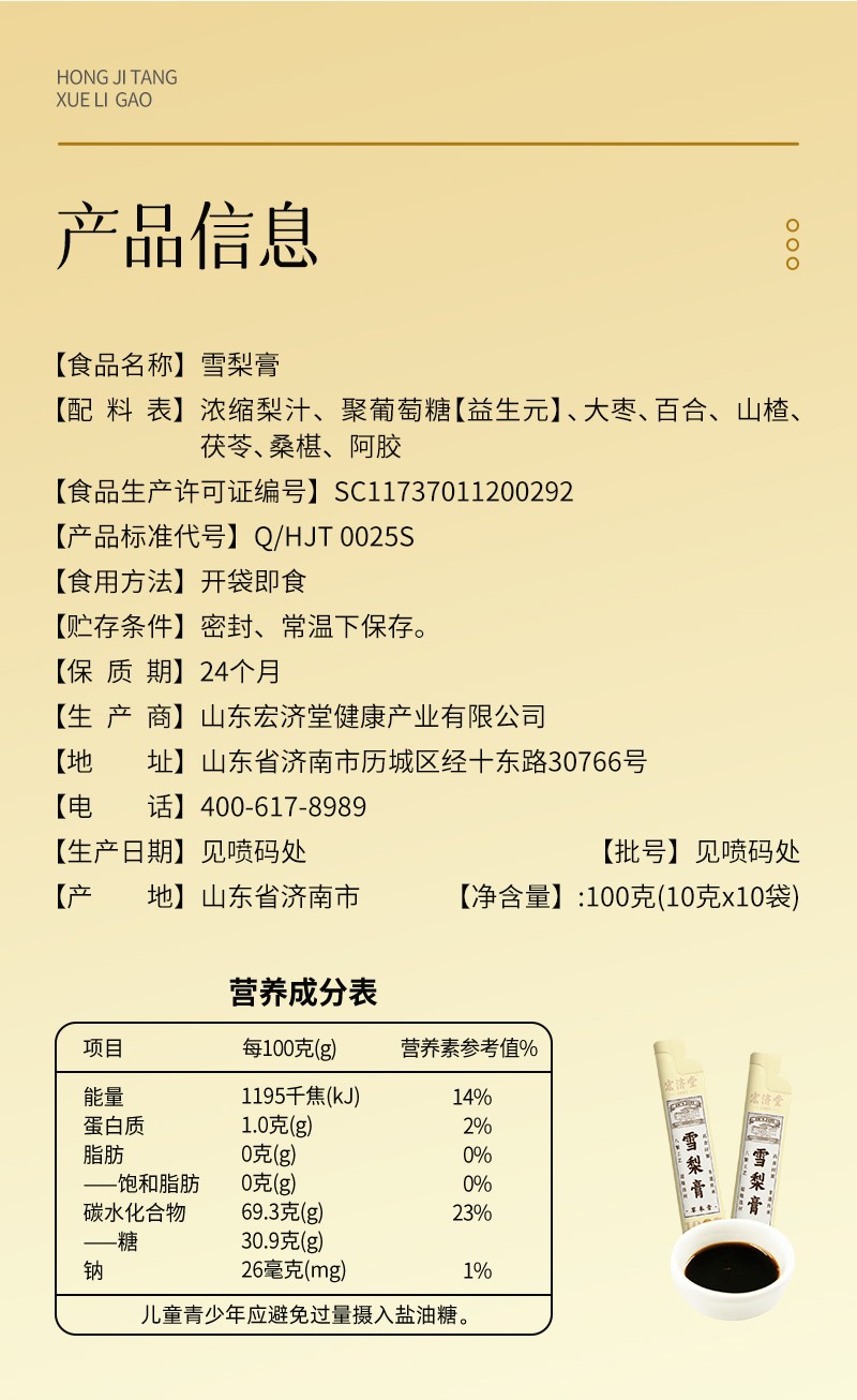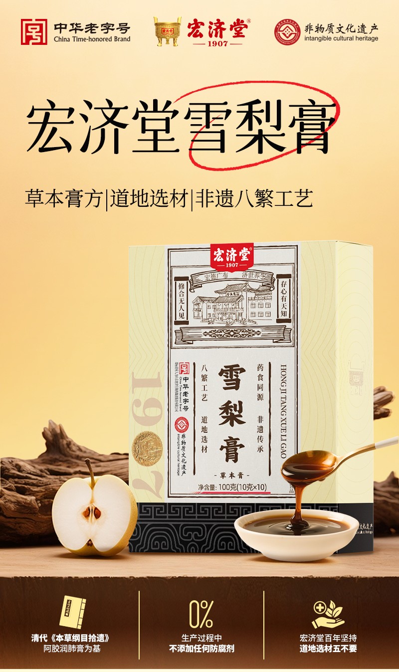 宏济堂 膏方100g(10g*10)/盒-雪梨膏 100g*3盒