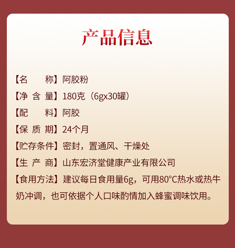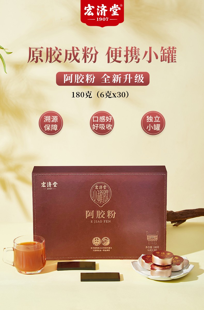 宏济堂 阿胶粉(小罐)6克*30罐/盒共180g礼盒装新年礼盒