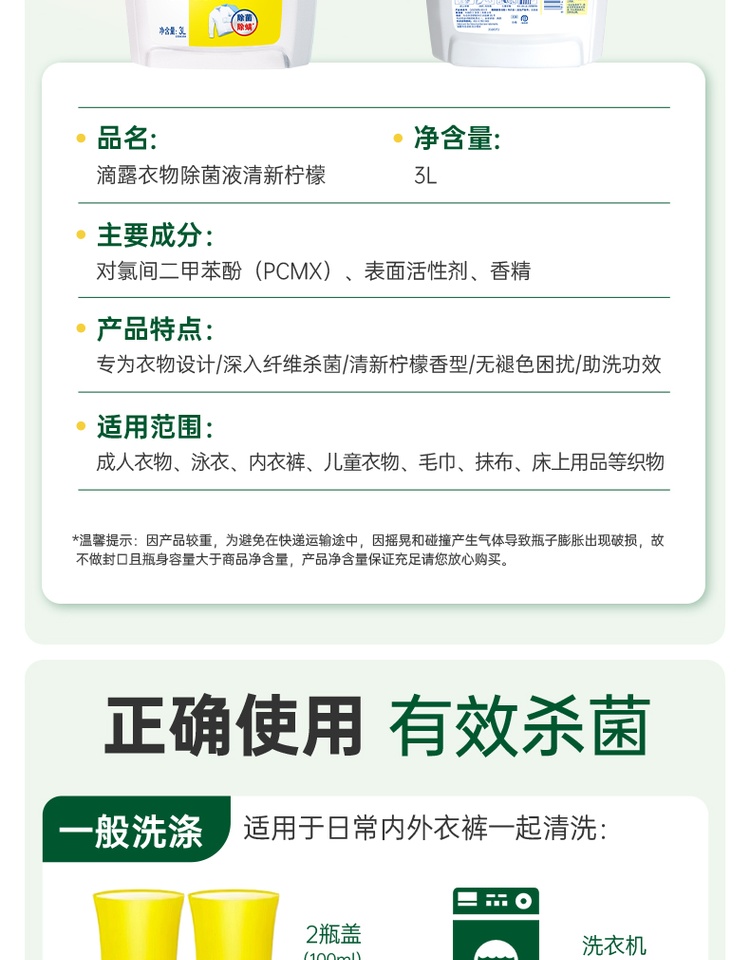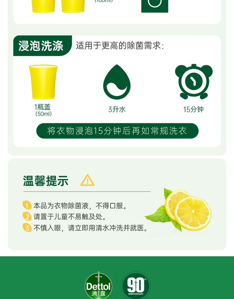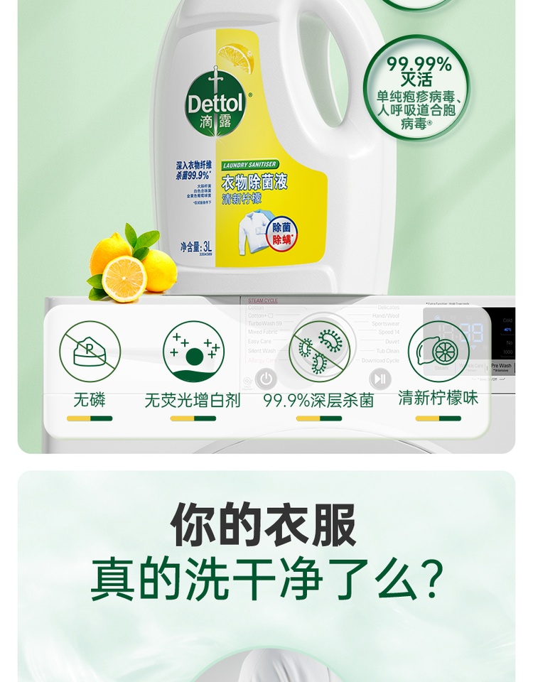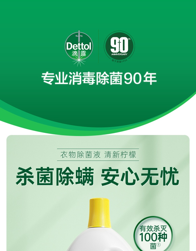 英国Dettol滴露 衣物除菌液清新柠檬3L