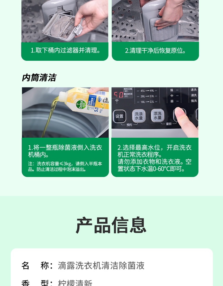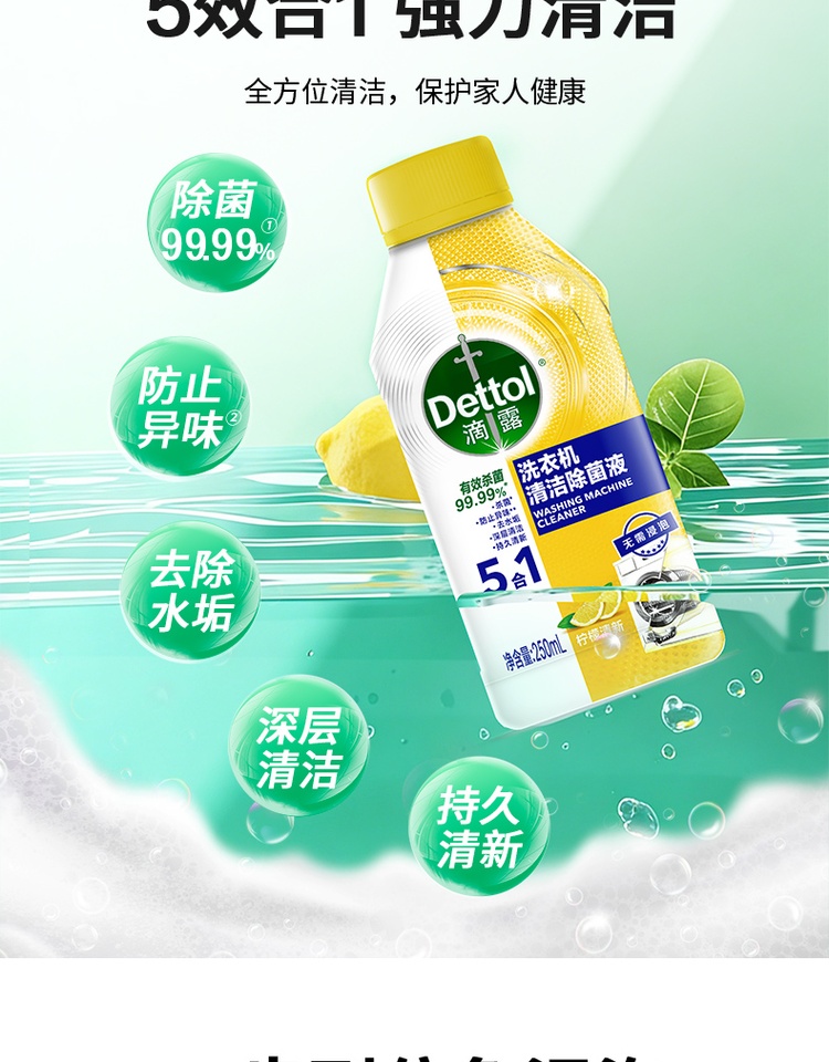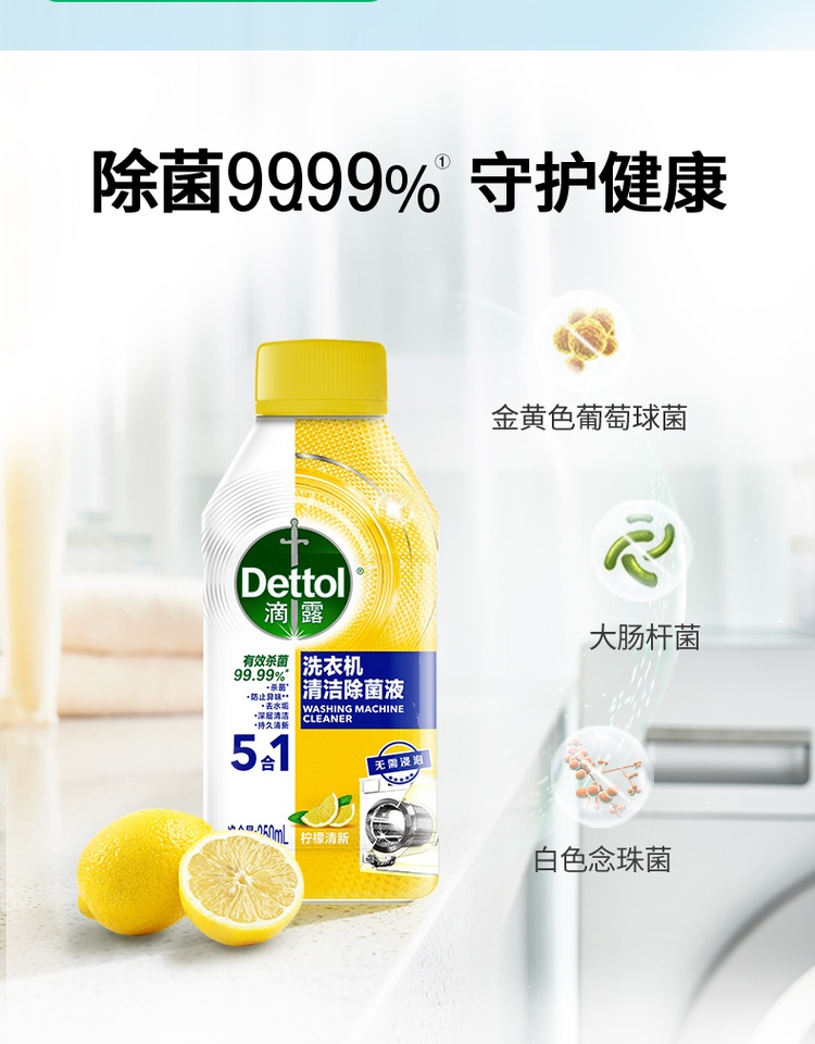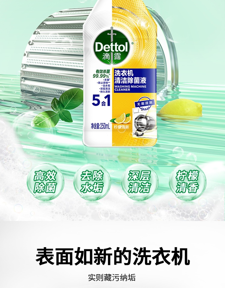英国Dettol滴露 洗衣机清洁除菌液柠檬清新250ml