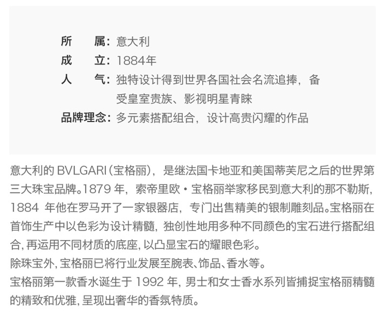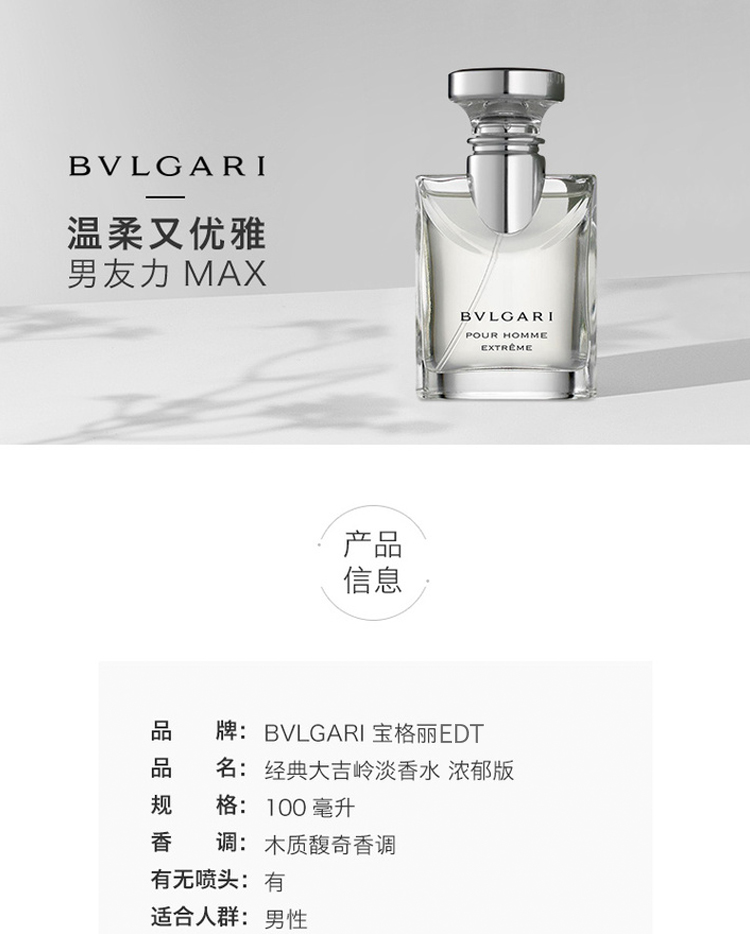 宝格丽BVLGARI大吉岭茶浅色男士香水 100ml EDT