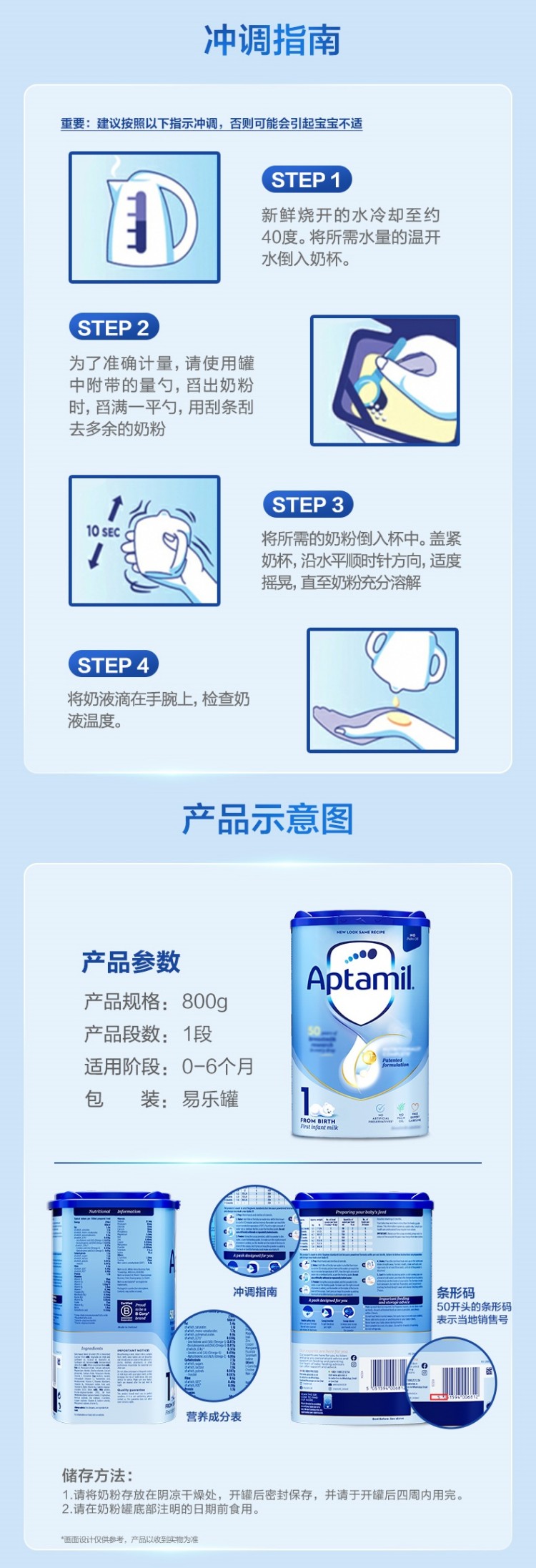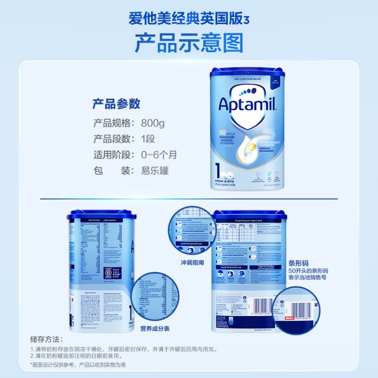 英国爱他美Aptamil奶粉1段800g(新旧版本随机)