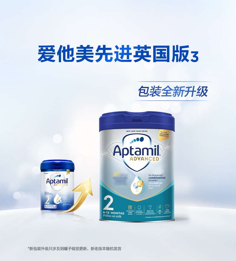 英国爱他美Aptamil白金版幼儿配方奶粉2段 6-12个月 800g(新旧包装随机)