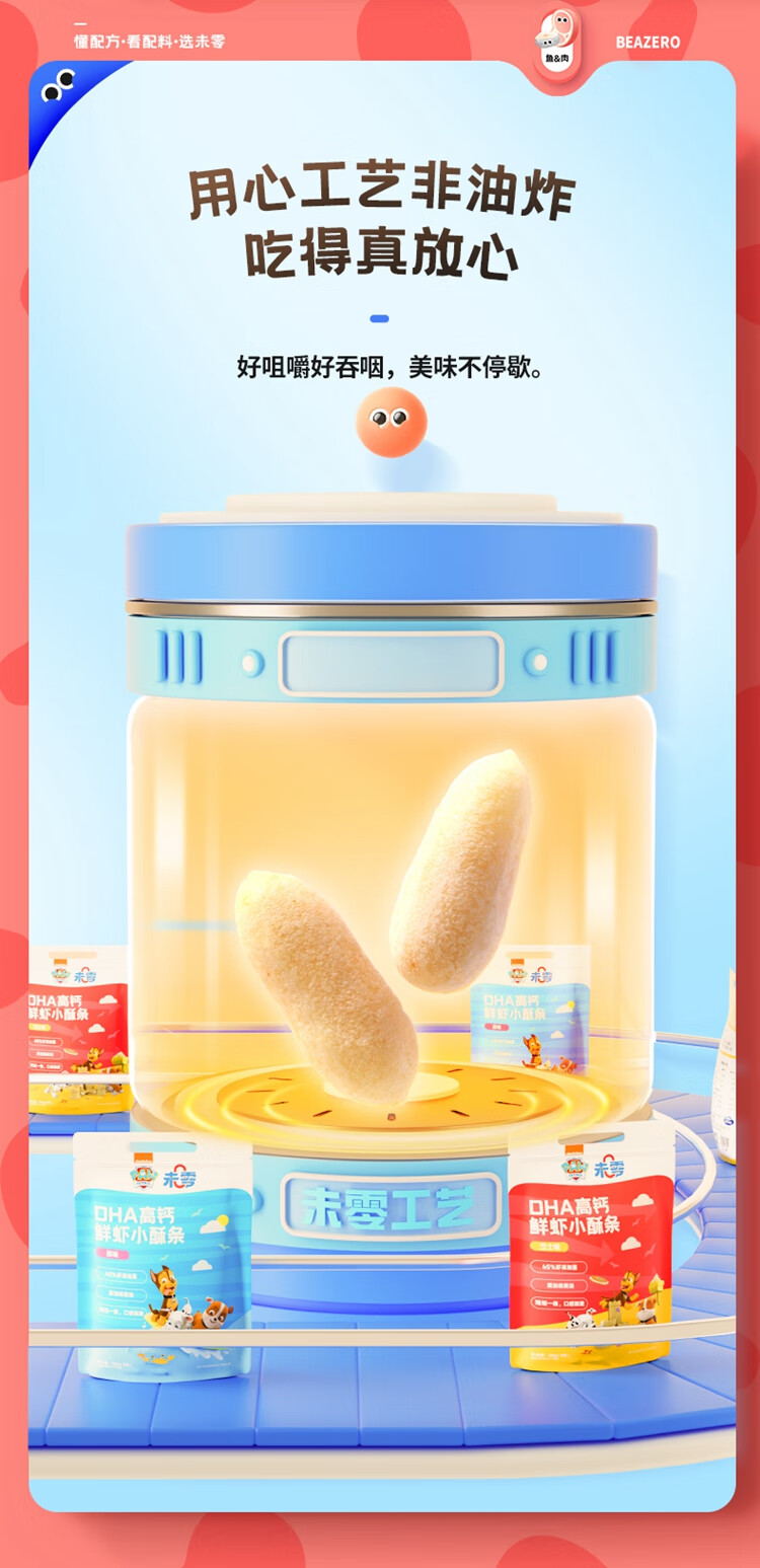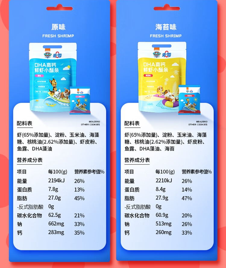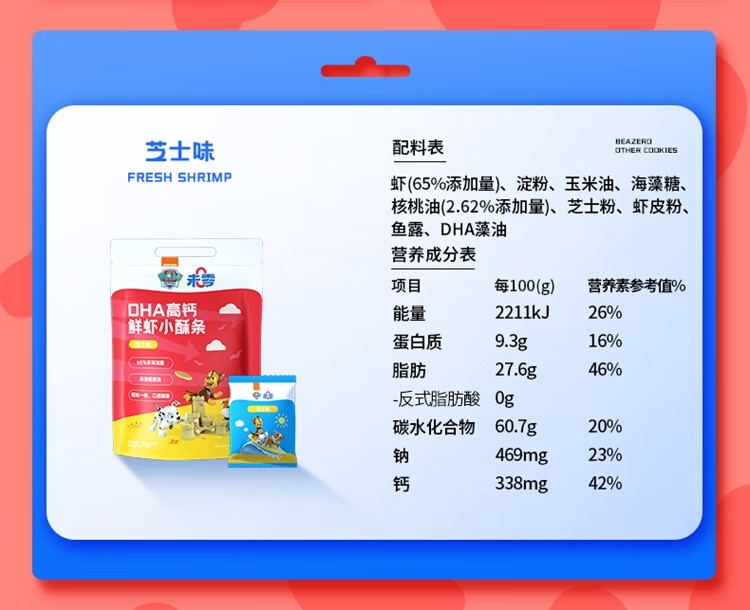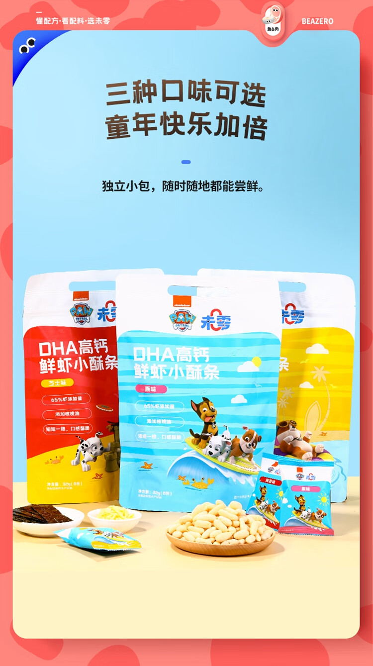未零(beazero)汪汪队立大功 DHA高钙鲜虾小酥条宝宝零食40g 3口味