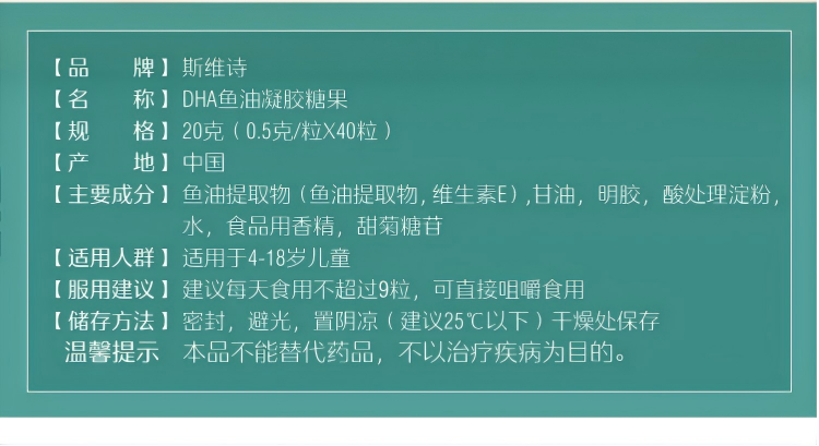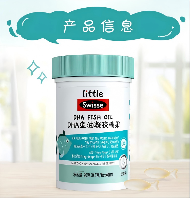 Swisse/斯维诗 儿童DHA鱼油凝胶糖果 橙香味(40粒/瓶)(版本随机)
