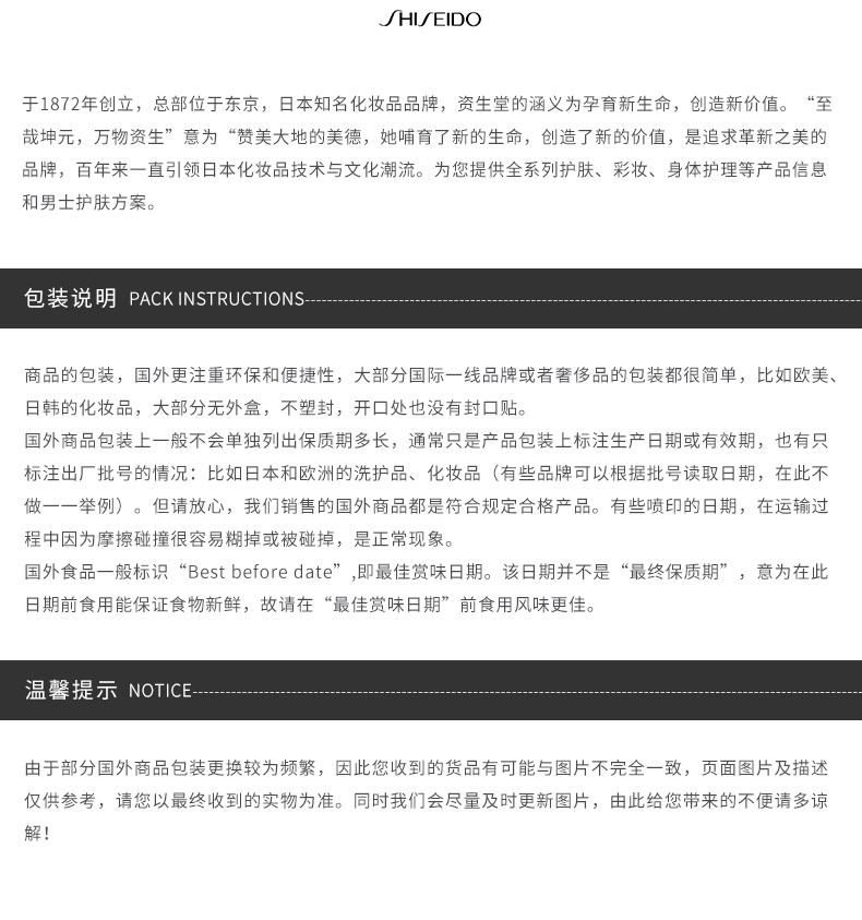 3. 跨境电商平台购买的境外商品可能无中文标签或者中文说明书,请留意网站产品中文介绍或者联系客服人员咨询(商财发[2018]486号文)。