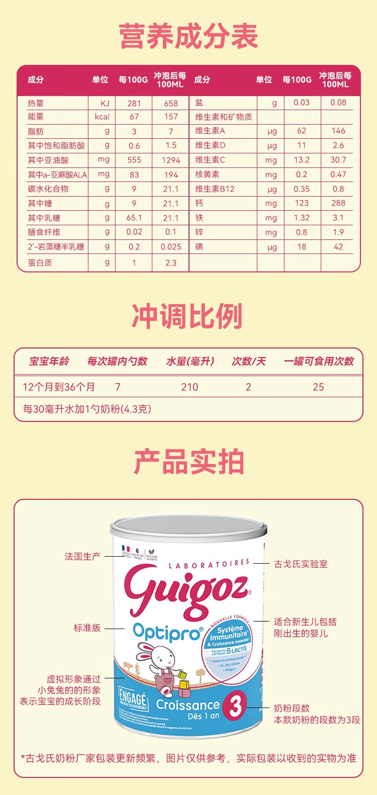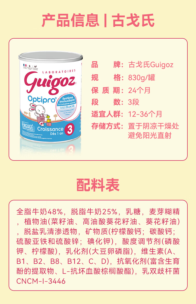 法国古戈氏Guigoz 3段标准配方牛奶粉 830g